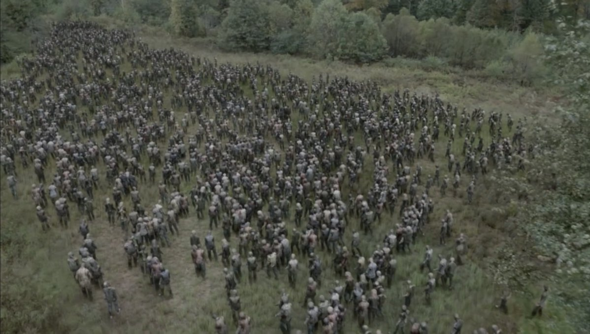 Lt. Commander Fields had set up his line knowing that the dead were coming. Reports of a mass coming out of the north had been confirmed by recon. In order to effectively eliminate the largest possible number of zombies, Fields positioned his men opposite the northern tree line with a large, open field between him and the coming flood. That next morning, as the mist burned off the dewy field, the Guards awoke to the horror that awaited them. For as far as the eye could see, the horizon was filled with a wall of walking dead.Attacker: Zombies (No more details)