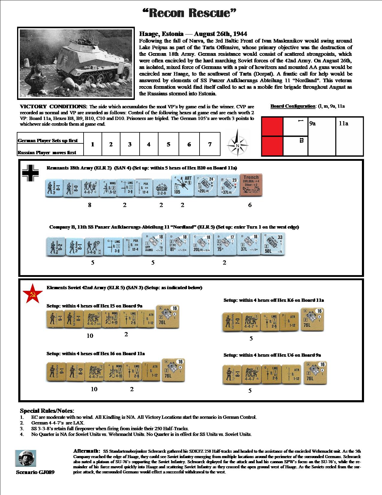 Defender: German / German (SS) (Remnants 18th Army and Company B, 11th SS Panzer Aufklaerungs-Abeilung 11 "Nordland")