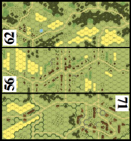 | Misc Rules: | PTO (G.1), LJ (G2.1) [Exc: Roads, Brush exist]. Roads: Dirt, Bldgs: Wooden, No -1 Depressions. |