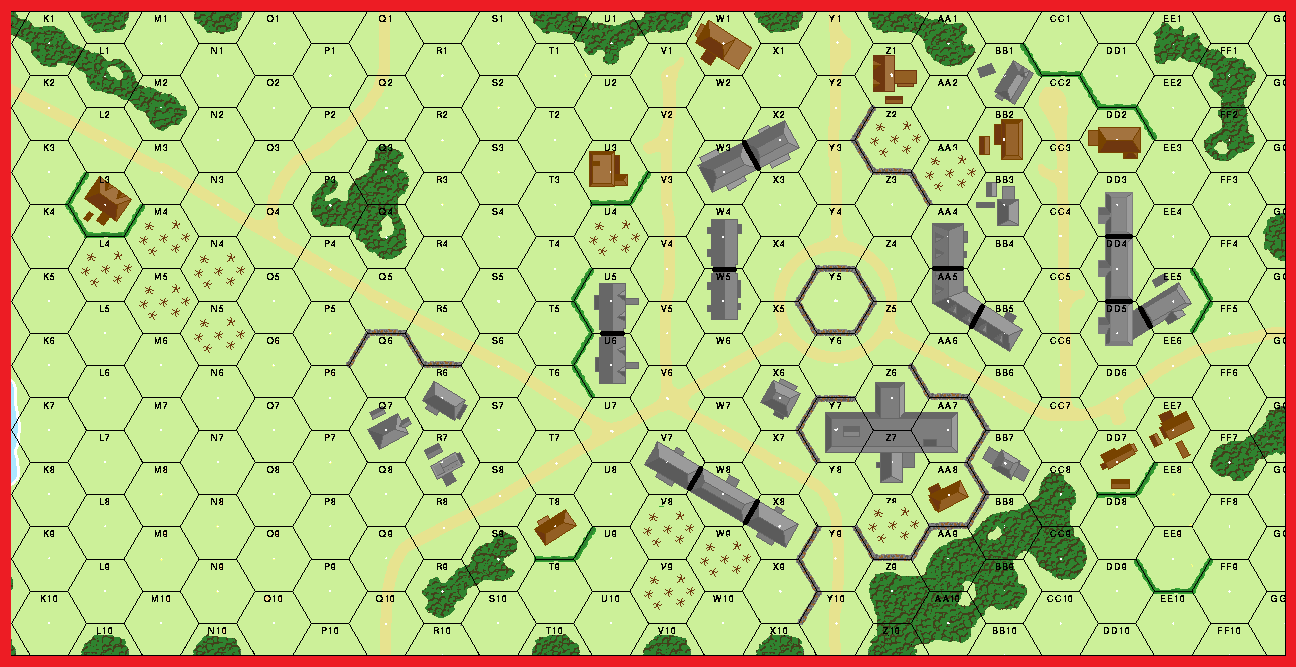 | Misc Rules: | All Buildings are Single Story (B23.21). D: 2 squads may setup Deployed |
