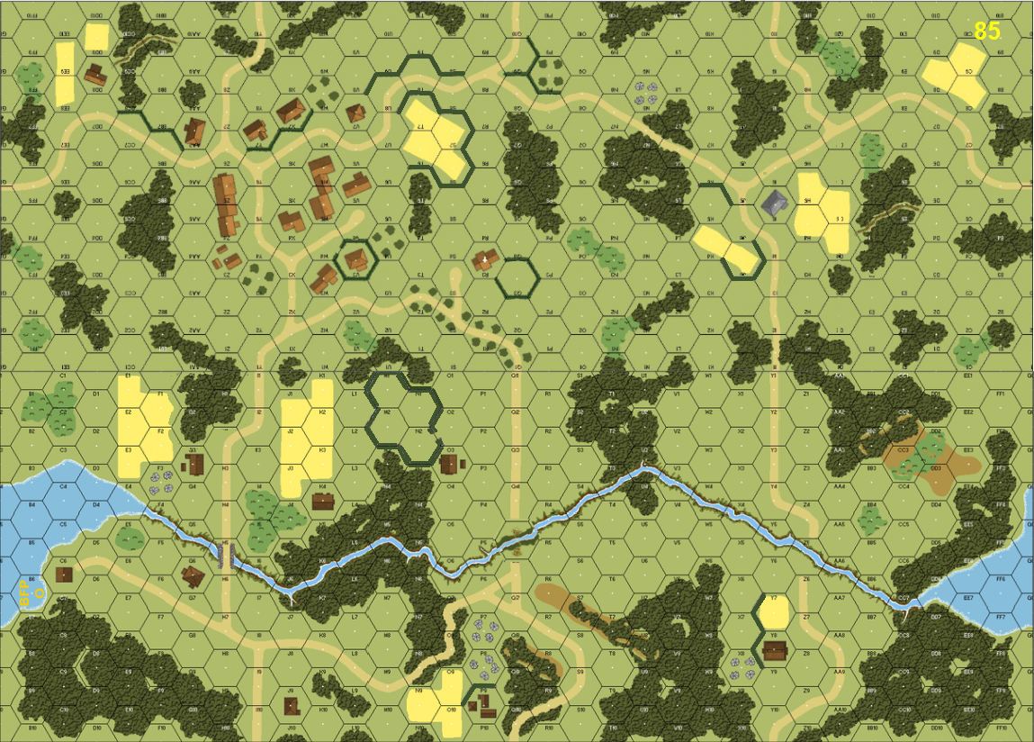 Operation Cobra was underway. The German positions south of St. Lo had been pounded by a massive Allied aerial assault. The Panzer Lehr Division had been shattered. Into this blasted and chaotic landscape were sent fast moving American units intent on seizing key objectives deep behind the German positions in order to trap any surviving German formations attempting to retreat or recombine with other German defensives. A CCA made up of the 41st Armored Infantry and tanks of the 2nd Armored Division headed south and encountered the first German resistance at Quibou, which made up the "Yellow Line" defenses of Panzer Lehr. Brushing aside the resistance, the CCA quickly passed through Dangy. After Dangy they hit the "Red Line" defense at Le Pont Brocard, which was defended by a small Kampfgruppe.Attacker: American (CCA Elements of the 2/67 Armored and 3/41st Armored Infantry)