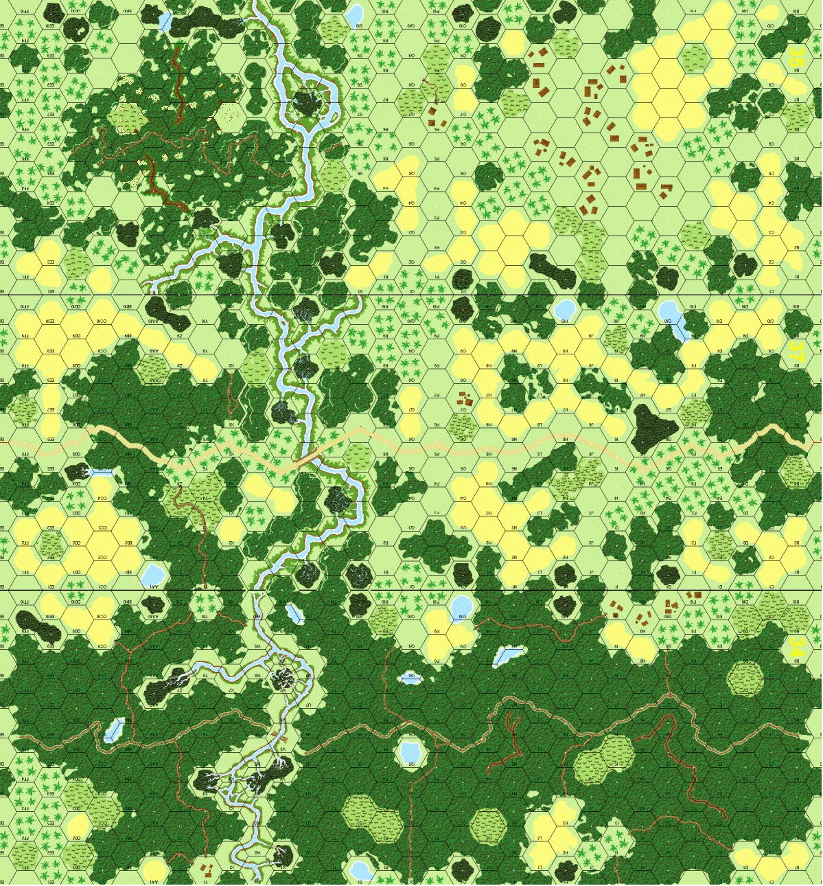 The 158th Infantry, originally part of the Arizona National Guard, was composed primarily of Pima, Papagos, and Maricopa Indians plus some Mexican-Americans. For reasons known only to high command, these men of the great Southwest desert were sent to the Canal Zone for jungle training, where they acquired the nickname "Bushmasters." On 21 May 1944 the 158th Regimental Combat Team landed at Arare on the north coast of New Guinea with orders to capture Sarmi and its valuable airfields. Unfortunately, intelligence estimates of the enemy were wildly inaccurate. Instead of the 6,500 Japanese they had been led to expect, the region was held by some 11,000 enemy troops: two regiments of the veteran 36th ("Tiger") Division plus miscellaneous engineer, construction, and service units. Attacking westward on the 23rd, the RCT made modest gains against stiffer than anticipated resistance. The plan for the next morning was to lay in an artillery preparation, then have the 3rd· Battalion capture a tiny village dubbed Maffin #1 and seize a bridgehead over the diminutive Tirfoam River.Attacker: American (Companies I, K and L, 3rd Battalion, 158th RCT with 603rd Separate Tank Company)