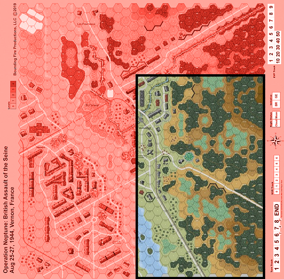 The crossing was proceeding slowly. Gains were expanded and more reinforcements were crossing the Seine. Still, machine gun and fire from hidden anti-aircraft guns from the overlooking heights continued to impede the reinforcements trying to get across. Major Grubb, the commander of B Company of the 1st Worchestershires was ordered to get to those heights and clear out these positions. Instead of taking the path to the left, which seemed to lead nowhere, the Major opted to stick to the main road and then sweep upwards. As the lead squad approached the fork in the road, machinegun fire erupted.Attacker: British (Elements of B/1st Worchestershires, 214th Infantry Brigade, 43rd Wessex Division)