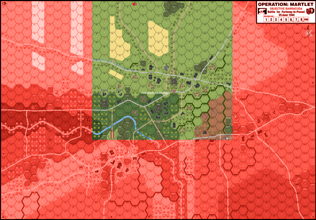 As the left assault battalion, the 11th Royal Scots Fusiliers were tasked with kicking the fanatical Germans of the 12.SS-Panzerdivision Hitlerjugend out of their prepared positions in Fontenay. Much like the other "new" battalions stumbling about in the dark and heavy dust, organization broke down and many troops drifted far to their right with little forward progress made before dawn. The RSF certainly had the toughest objective of the day. The Hitlerjugend had the time to fortify a number of buildings and were bolstered by Aufklarung and Pionier elements.Attacker: British (11th Battalion, Royal Scots Fusiliers)