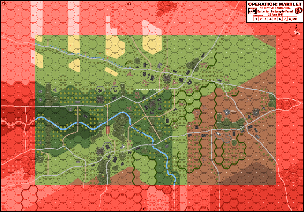 The stout resistance of the young SS-Grenadiers forced a radical change of plan. Monty's massive offensive, Operation EPSOM was due to start in under 12 hours. The planned exploitation south by the 7th Battalion, Duke of Wellington's Regiment was scrapped at 1700 hours. Instead, the Dukes were ordered to eject the Hitlerjugend from their strongholds in the southeast of Fortenay around the Chateau. The Dukes would be given the additional support of a fresh bombardment, machineguns, mortars, and armor (including Churchill AVREs), but delays assembling this support meant the attack would not be launched until 2100 hours. There were no further delays. The Dukes stepped off at 2100 hours, with C Company making good progress, capturing their objective within an hour. B Company attacked next, and after initially being held up by an SS strongpoint, it captured its objective with the aid of an AVRE.Attacker: British (7th Battalion, Duke of Wellington's Regiment and 11th Royal Scots Fusiliers, 2nd Battalion, Princess Louise's Kensington Regiment and C Squadron, Sherwood Rangers Yeomanry)