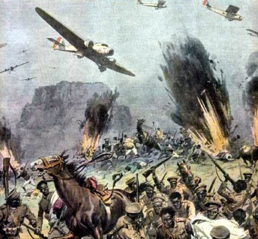 At dawn on 3 October 1935, 100,000 Italian troops crossed the northern frontier of Ethiopia in three large columns. "We have been patient for 40 years," Mussolini announced to the vast crowd assembled in the Piazza Venezia. "Now, we too want our place in the sun." The Italians met no resistance, as Haile Selassie wanted no doubt as to who was the aggressor, and the Ethiopian armies pulled back 30 kilometers. On the second day of the march, however, it was discovered that Ras Seyum, commander of the Army of Tigre, had sent several groups into the "neutral zone" against the Emperor's wishes. One of these troops, numbering some 500 men under the command of Dejaz Gebriet, had established itself on Amba Augher, which lay directly in the path of Pitzio Biroli's advancing Eritrean Army Corps.Attacker: Eritrean (II and IV Brigata Mista)