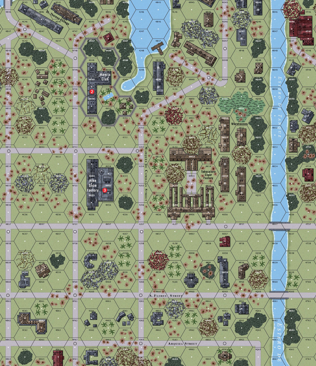 The Tabacalera Cigar Factory and warehouses were situated along the western shore of the Estero de Tanque. From here the Japanese could interdict any movement across the estero or the nearby bridge. Initial attacks on 10 February were repulsed by intense machine gun, mortar and small arms fire. The buildings would need to be cleared prior to any advance towards the Government buildings in downtown Manila. Doing so would exact a heavy price in blood and suffering for soldiers of both sides.Attacker: American (129th Infantry Regiment, 37th Infantry Division)