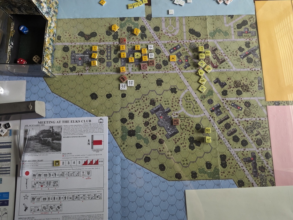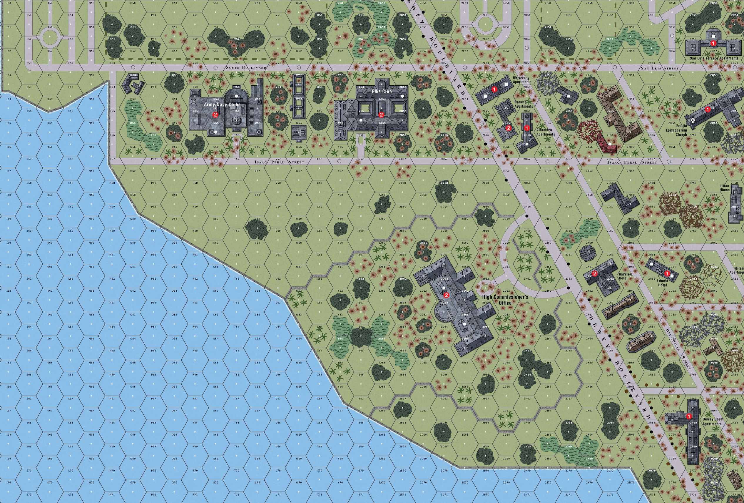 Situated near the shores of Manila Bay were the Elks Club, the Army/Navy Club, and the High Commissioner's Office. These large structures blocked access towards Burnham Green, the Manila Hotel, and the South Port area. The Japanese positioned their defenses so that all three buildings were mutually supporting. The troopers of the 12th Cavalry Regiment drew the assignment of taking this area. They would soon discover that even with armor support it would take heroic actions by many troopers to clear the Japanese from those three key buildings.Attacker: American (12th Cavalry Regiment, 1st Cavalry Division and 44th Tank Battalion)