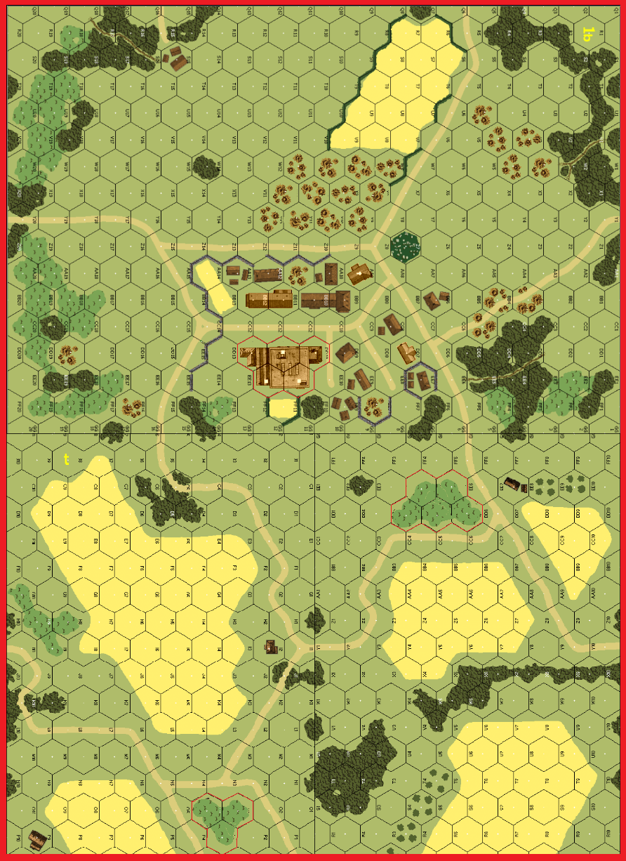 | Misc Rules: | Wood Bldgs. Orchards on 1b are Shellholes. Variable Reinforcements Both Sides |
