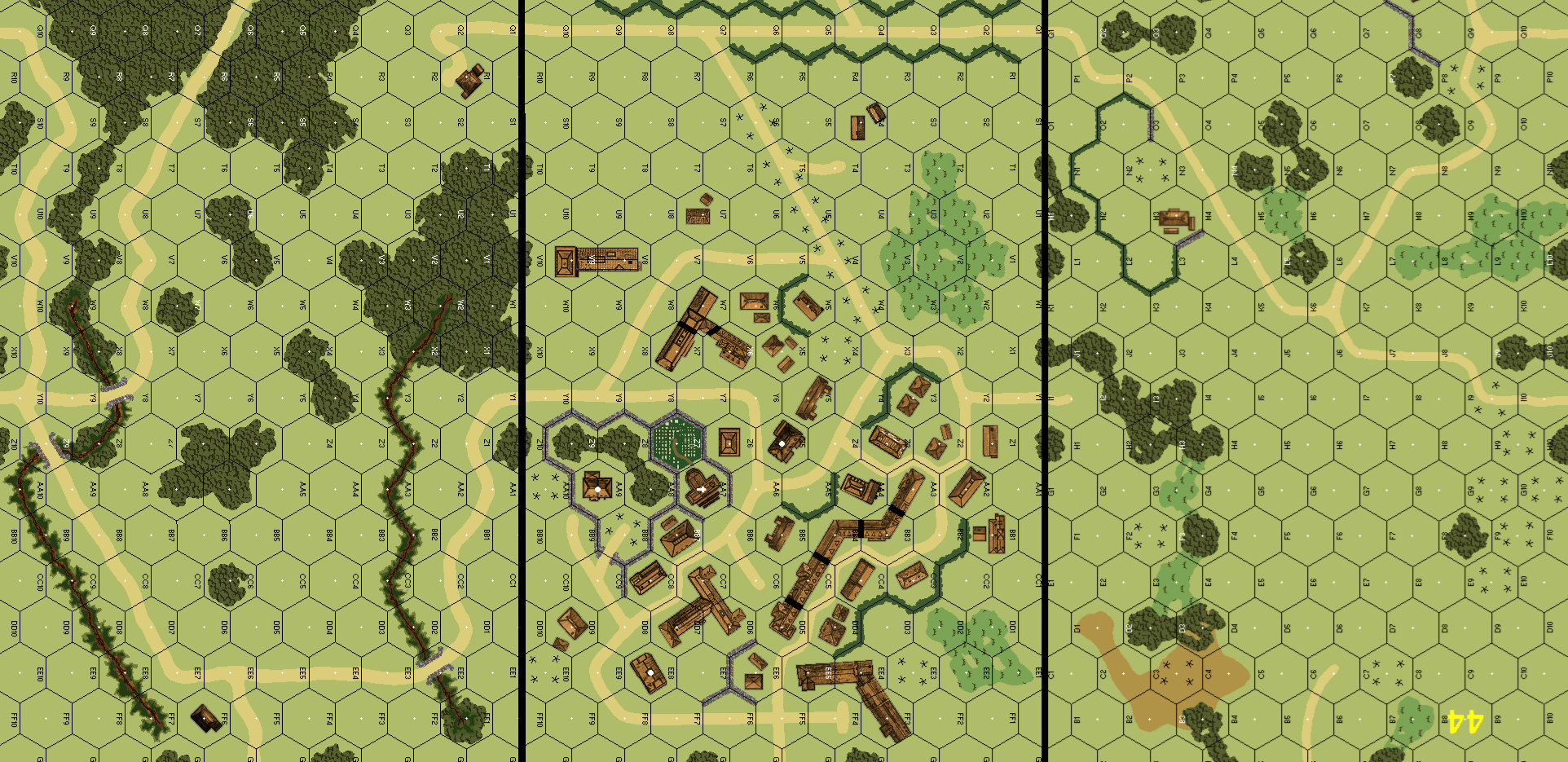 | Misc Rules: | Soft Ground (D8.21), All roads are dirt, Vech. Road Rate (B3.41) N/A, Rowhouse Bars do not exist. |