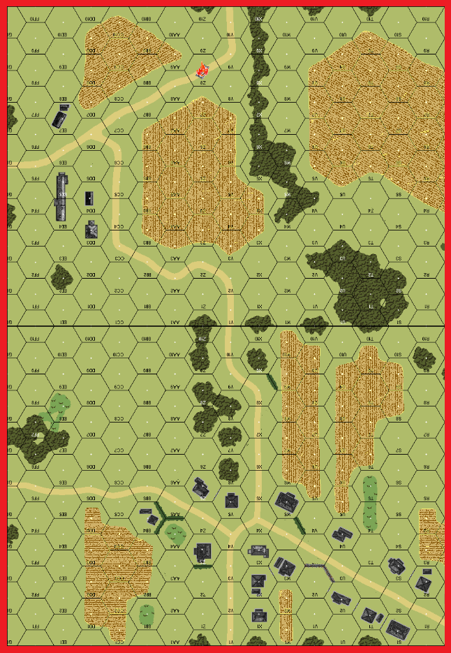 | Misc Rules: | Bldgs: Stone. Orchards: Open ground, Orchards in road hexes do not exist. |