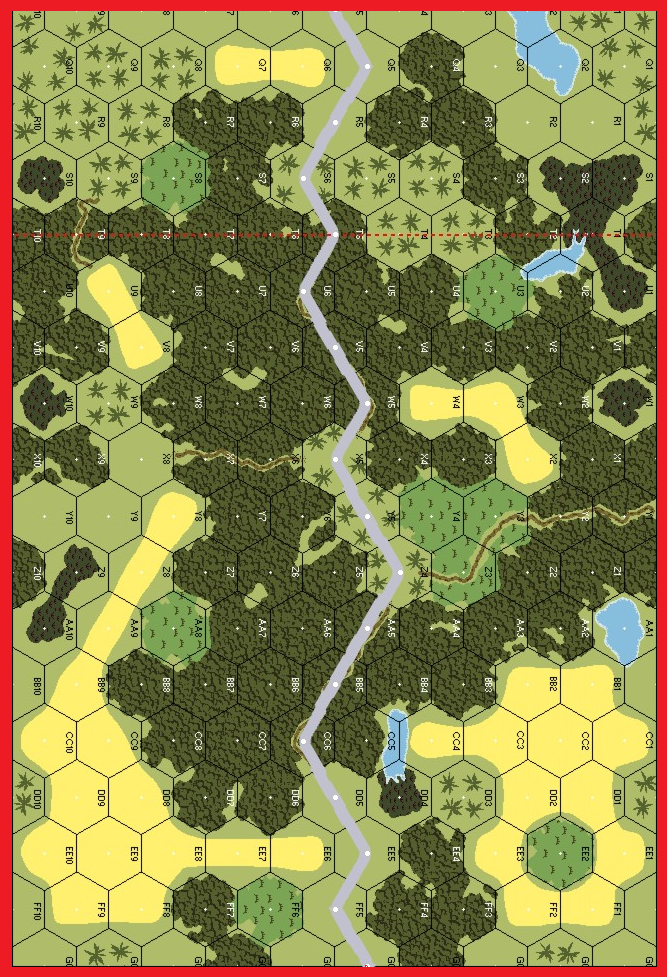| Misc Rules: | PTO (Exc: central paved road exists). Overcast, Wet EC. D: no more than 2 Wire in road hexes |
