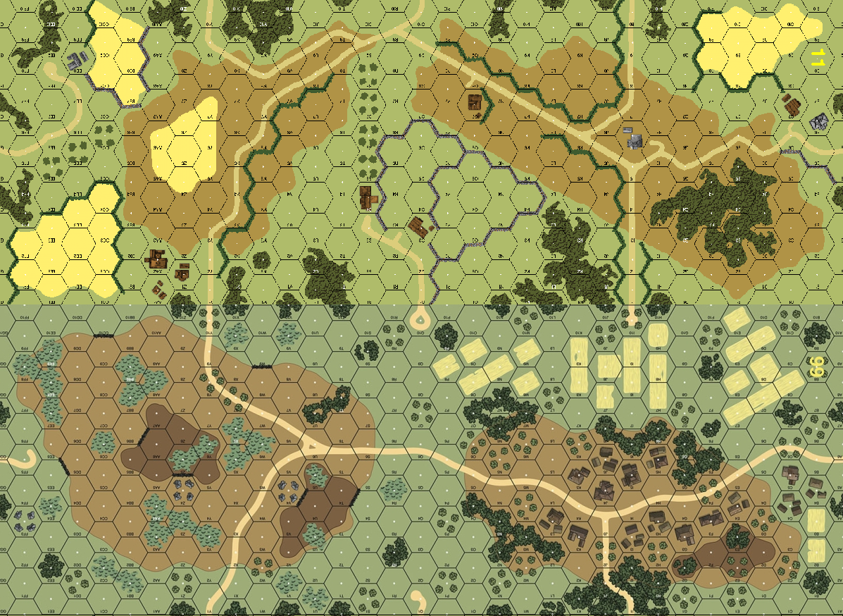 | Misc Rules: | Bldgs: Wooden, Ground Level only. Woods: Pine Woods (B13.8). A: DC, D: PB (B30) |