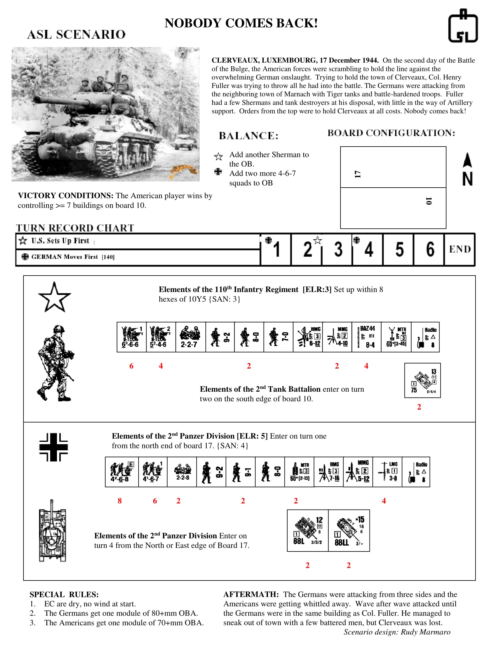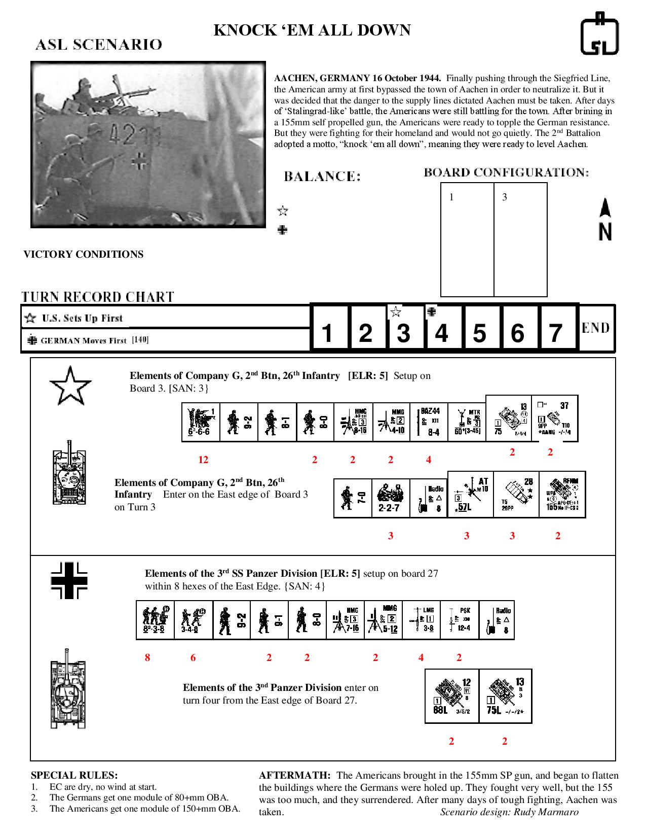 | SASL 1 - Solitaire ASL (2nd Edition) | 0 | 0 / 21 scenarios | 0.00% |